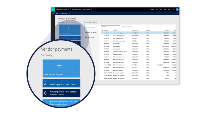 - Provide checks and balances using process automation, encumbrance, budget planning, budget control, and three-way matching